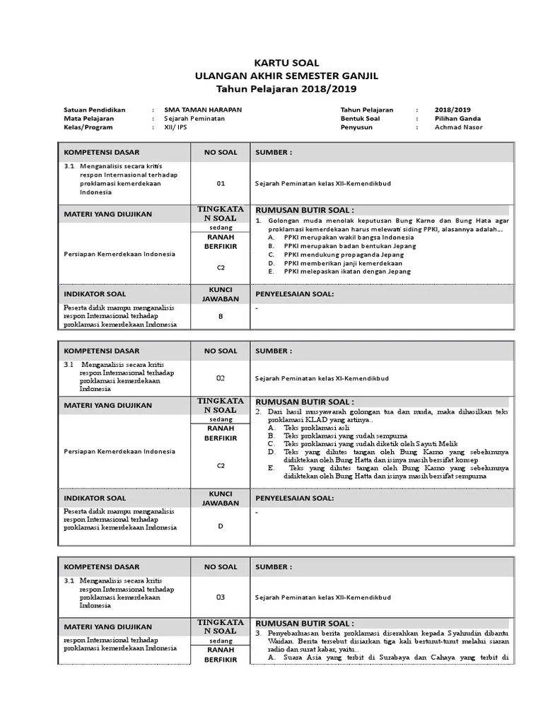 Contoh soal ujuan sejarah peminatan kelas xi ips semester 2 penulis.